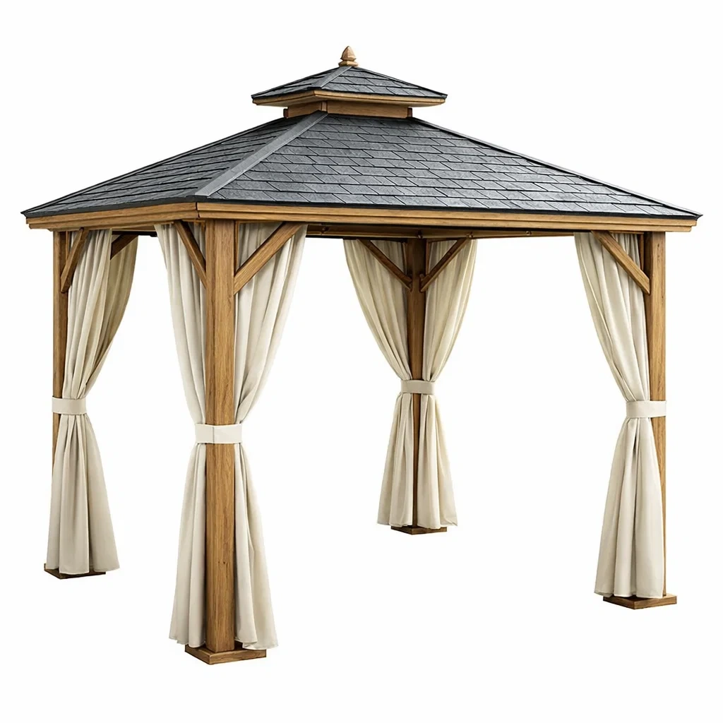 Gartenpavillon Holz PVC Dach Polyester Vorhänge 350x350x300 cm